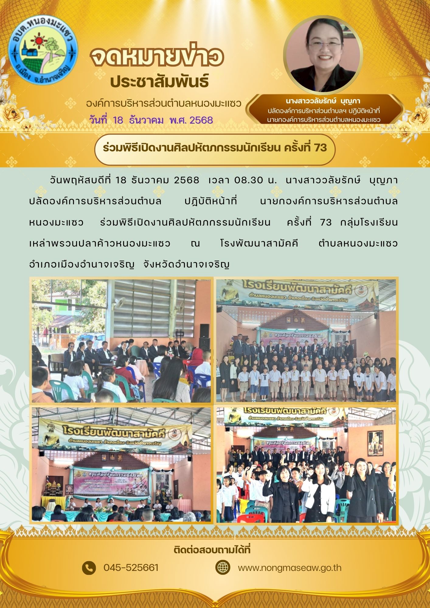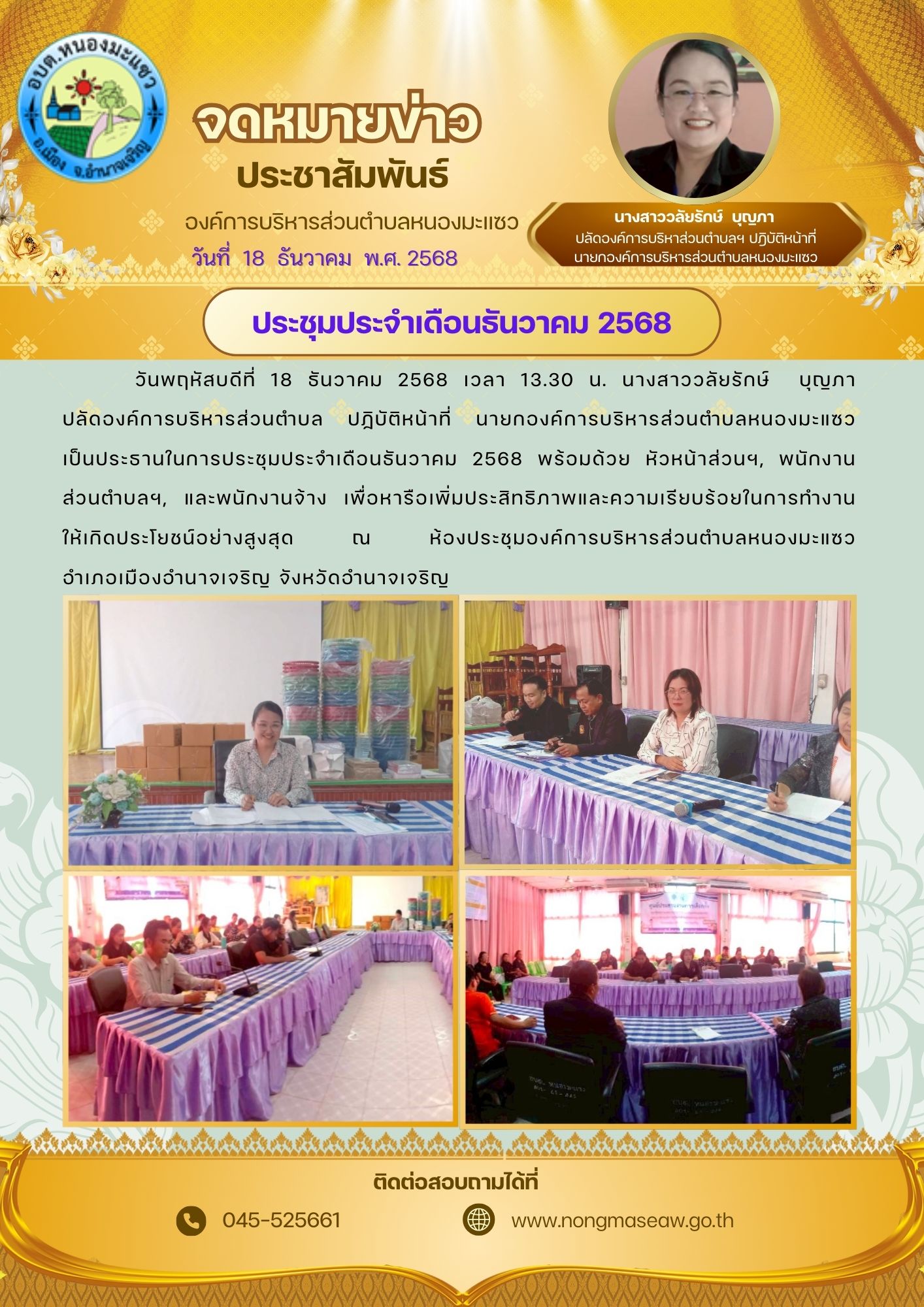 องค์การบริหารส่วนตำบลหนองมะแซว 2021 ยินดีต้อนรับ หมู่ที่ 12 บ้านพัฒนาสามัคคี ตำบลหนองมะแซว อำเภอเมืองอำนาจเจริญ จังหวัดอำนาจเจริญ