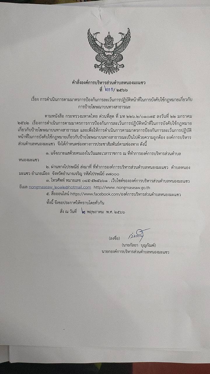 การแจ้งเบาะแสการดำเนินการตามมาตรการป้องกันการละเว้นการปฏิบัติหน้าที่ในการบังคับใช้กฎหมายเกี่ยวกับการป้ายโฆษณาบนทางสาธารณะ