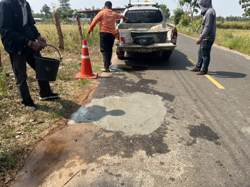 ดำเนินการติดตั้งยางชะลอความเร็วบริเวณถนนหน้าวัดศรีเงางาม บ้านหนองหิน
