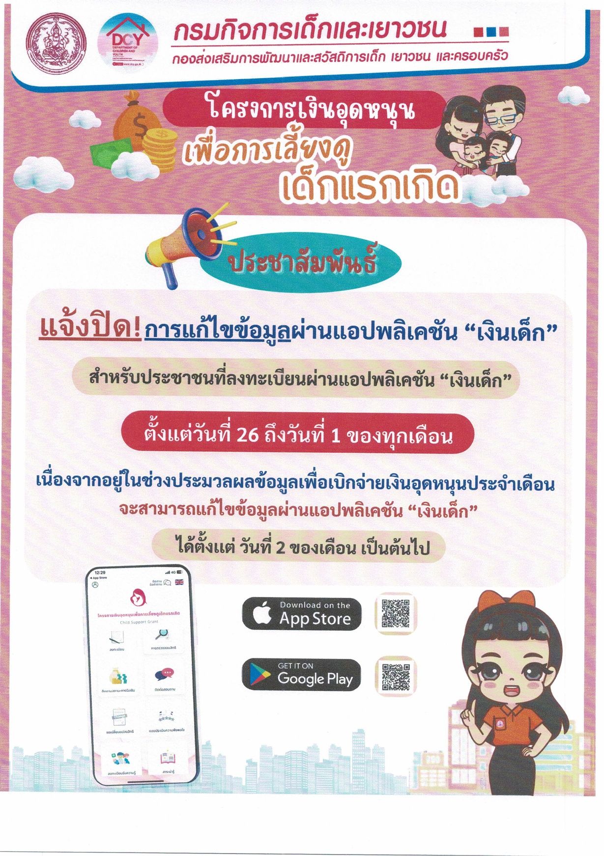 โครงการเงินอุดหนุนเพื่อการเลี้ยงดูเด็แรกเกิด แจ้งปิด การแก้ไขข้อมูลผ่านแอปพลิเคชัน